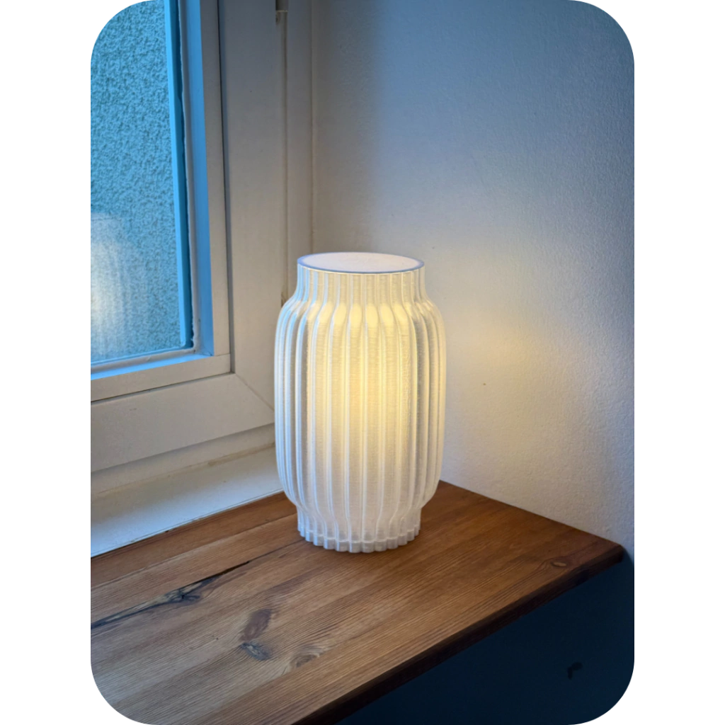 Com formas suaves e iluminação envolvente, A LANTERNA traz o charme da simplicidade aliada a um design atemporal. Seu corpo translúcido com textura ondulada emite uma luz suave e aconchegante, perfeita para transformar qualquer ambiente em um refúgio de tranquilidade. Produzida em impressão 3D com acabamento artesanal, ela une tecnologia e cuidado nos detalhes.